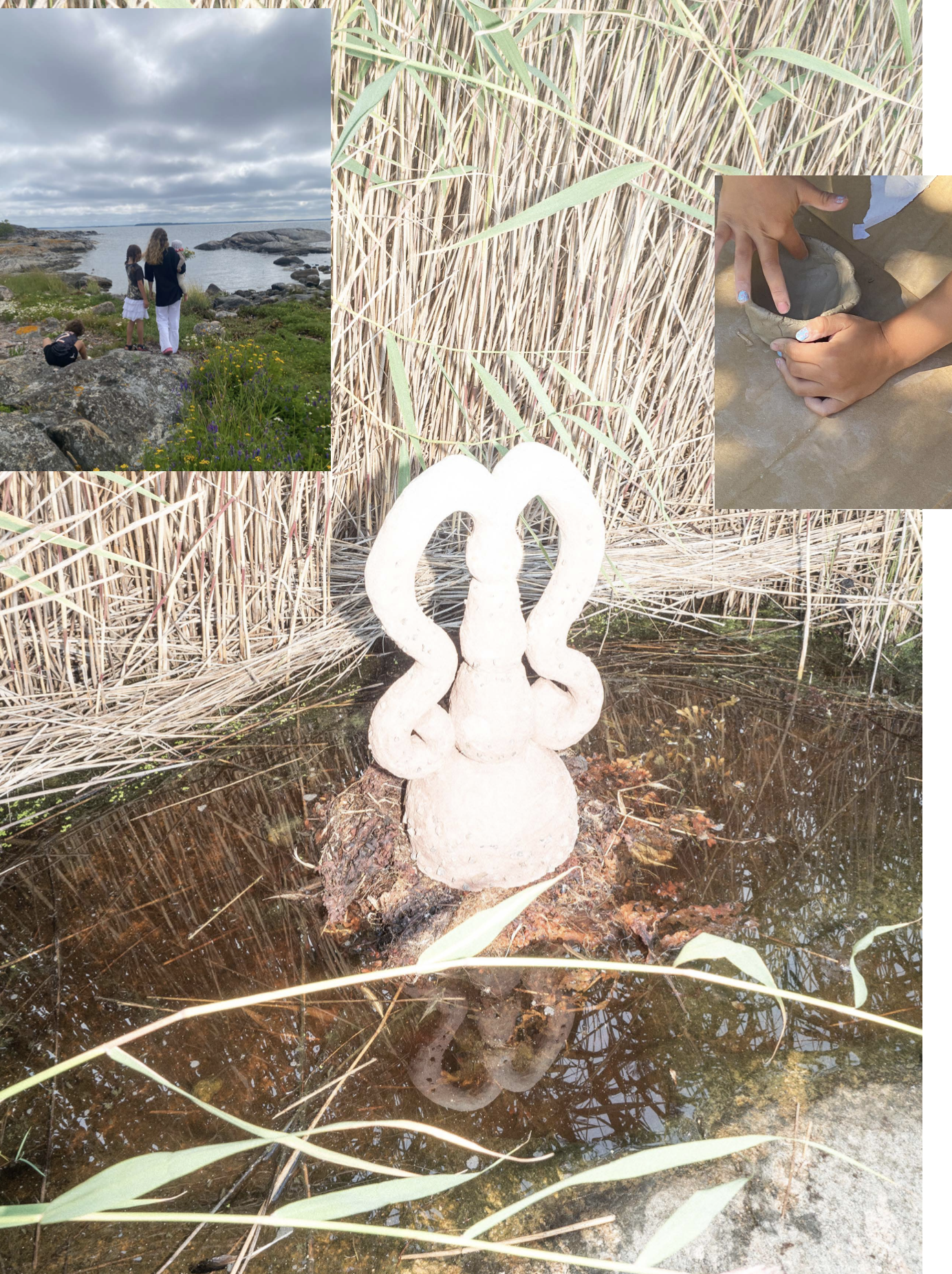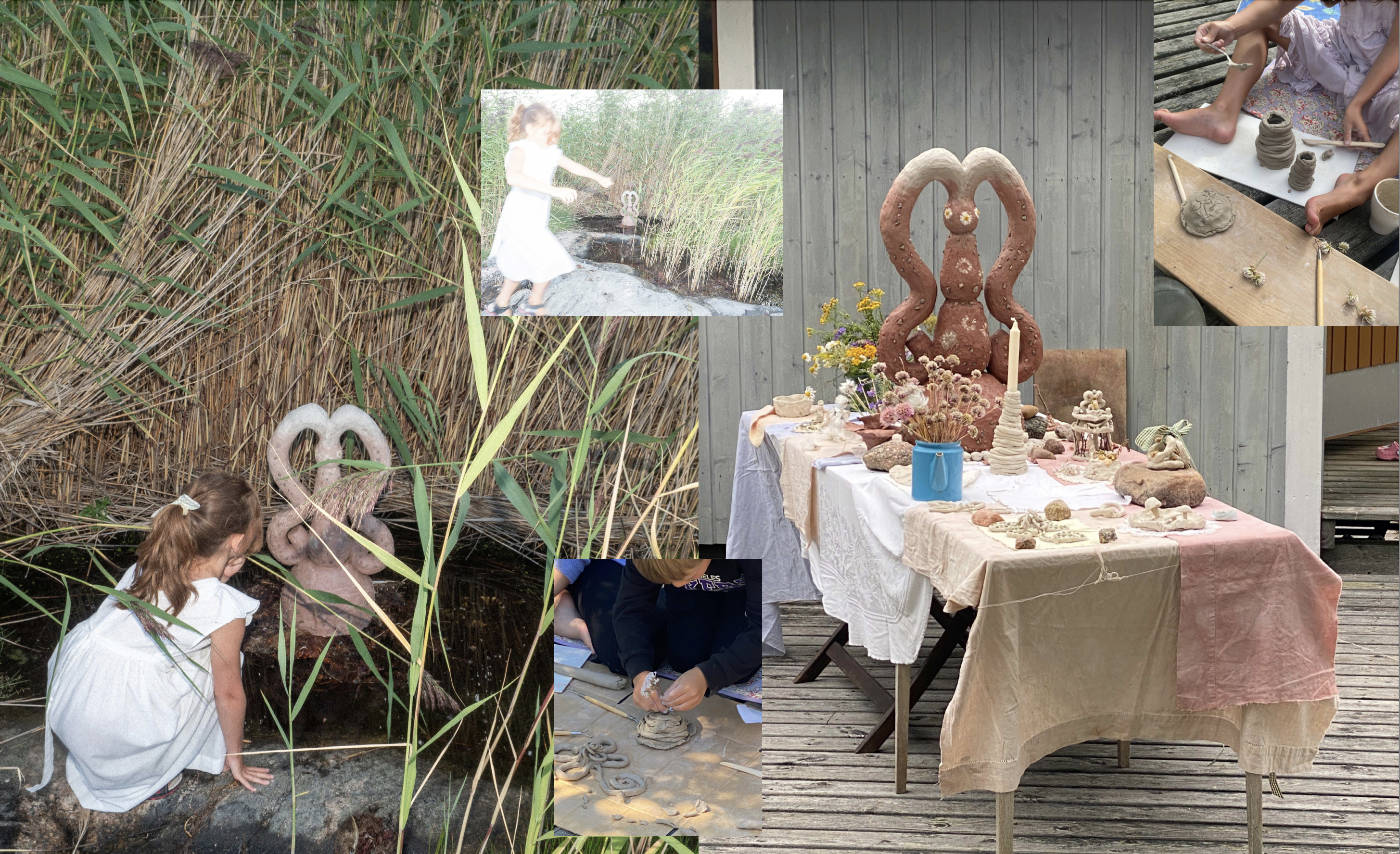 In the summer 2024, me and my sister, visual artist Juuli Kangasniemi, shared holiday life, sisterhood and motherhood, little clay workshops were held with the kids, spontaneous summer shows were put together and precious gifts of clay were given to the island.